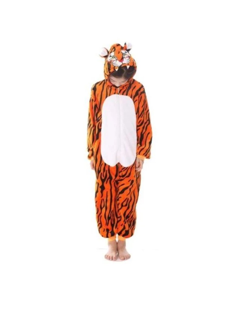 Dieser kuschelige Overall ist von den majestätischen Tigern inspiriert und ermöglicht es dir, in die Rolle eines furchtlosen Raubtiers zu schlüpfen. Das hochwertige Kigurumi sorgt für maximalen Komfort und hält dich an kühlen Tagen warm. Begib dich in einen spannenden Abenteuerdschungel und verwandle dich mit unserem Tiger Kinder Onesie in eine Raubkatze.