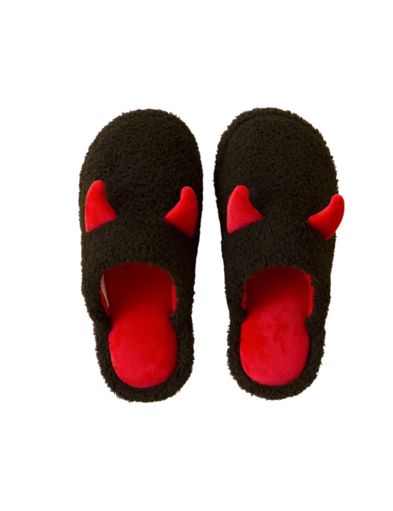 Bringen Sie einen Hauch von Verspieltheit in Ihre Schritte mit diesen schwarzen und roten Teufel Pantoffeln. Mit roten Teufelshörnern auf den Spitzen verleihen sie Ihren Füßen einen frechen und knuffigen Look.