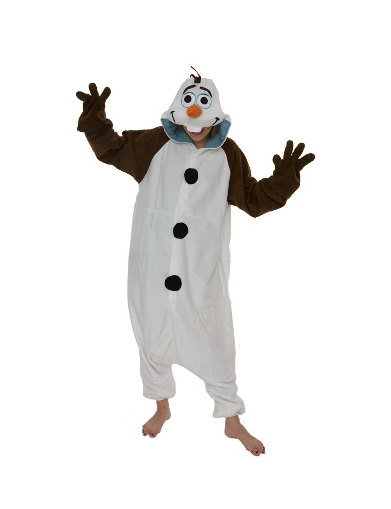 "Hei, olen Olaf ja pidän lämpimistä haleista!" Muista tämä ja muut hassunhauskan Olaf-lumiukon parhaista lausahduksista Frozen ja Frozen II -elokuvista, kun liikut naamiaisissa päälläsi Olaf-onesie. Frozen Olaf Kigurumi-asuun on väreiltään valko-ruskea, ja hupun hellyyttävät kasvot kiinnittävät huomion - enää et voi vastustaa tätä ihastuttavaa hahmoa!