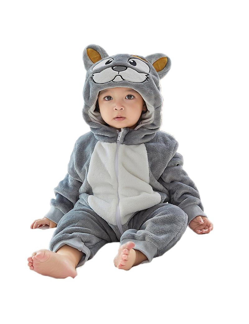 Cette combinaison pyjama loup pour enfant est parfaite pour les moments de jeu, de détente ou pour la nuit. Sa capuche met en avant un visage de loup rigolo avec oreilles et museau brodés. Conçue en tissu polaire doux, elle garde au chaud tout en offrant un grand confort. Sa fermeture éclair pratique permet un enfilage facile.