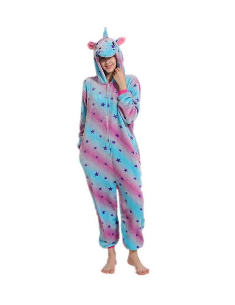 Stjernestøv drysser over denne fargesprakende enhjørningdrakten. Fra morgen til kveld glitrer himmelen på stoffet. Det lille hornet og de søte ørene gjør den enda mer sjarmerende. Sov trygt mens drømmene fyller seg med stjerners prakt.