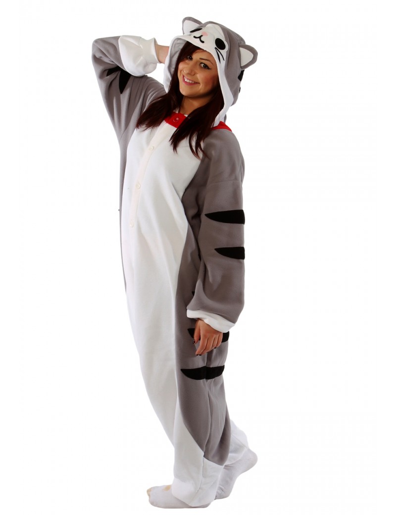 Dagen blir bara roligare om du har på dig vår katt kigurumi! Den röda kragen och det bedårande kattansiktet på luvan kommer göra dig populär på maskeraden. Med den mjuka textilen kan du dansa loss utan att oroa dig om att något spricker. Prova också som en pyjamas och se du börjar spinna som en katt efter en god natt med sömn!