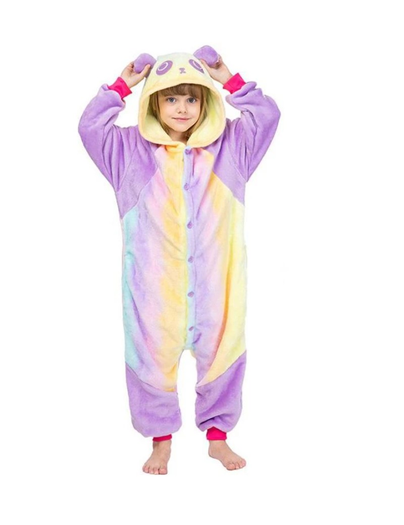 Pandor är redan supergulliga men vår pyjamas är av den magiska sorten med regnbågens färger skiner genom dess mage! Naturligtvis är denna pyjamas mjuk som pandapäls och varm också tack vare de stretchiga ändarna vid armar och ben. Glöm inte heller att dra upp luvan och visa upp det bedårande ansiktet och de lurviga öronen. Alla kommer vilja klappa och krama dig när du har på dig denna onesie!